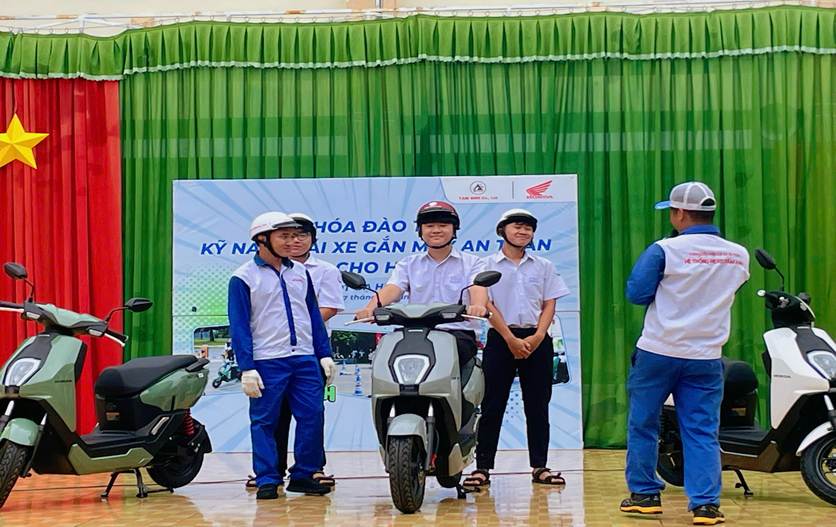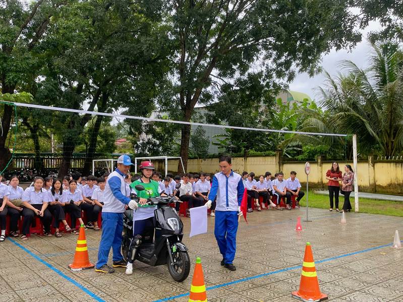 Học sinh tham gia thực hành sử dụng xe máy điện