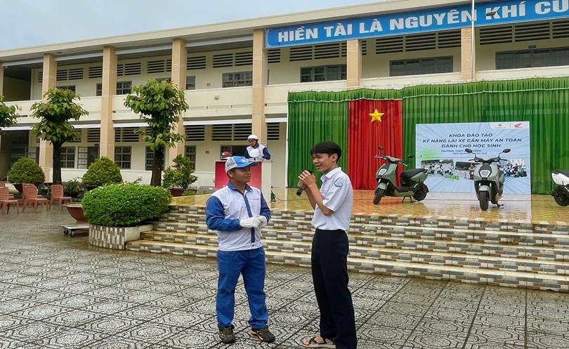 Sau mỗi câu hỏi tương tác, các em học sinh đều nhận được một phần quà ý nghĩa là chiếc mũ bảo hiểm chất lượng từ Công ty Xe máy Tâm Anh. Hoạt động này không chỉ là một phần thưởng mà còn là sự khích lệ các em học sinh chủ động tìm hiểu và chấp hành pháp luật về giao thông.