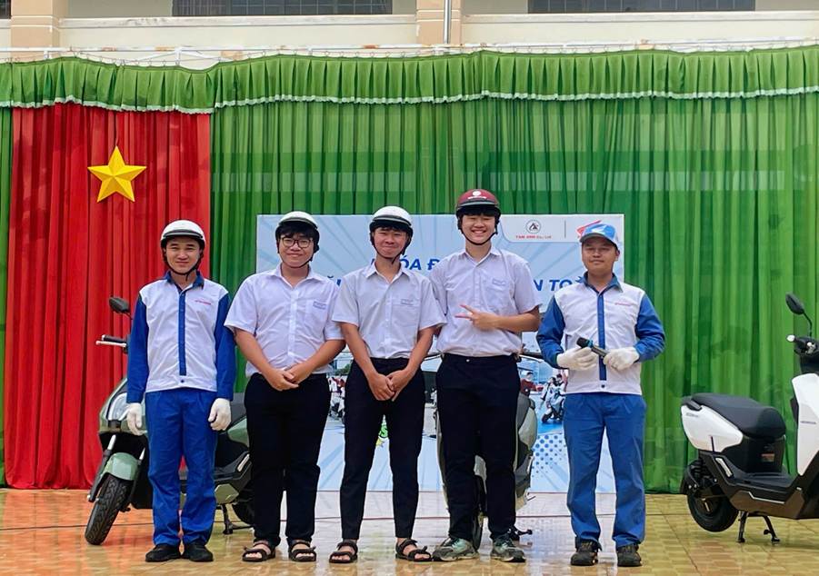 Hình kỷ niệm các học sinh tham gia thực hành sử dụng xe máy điện