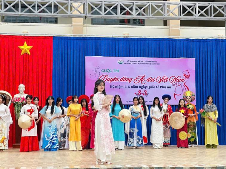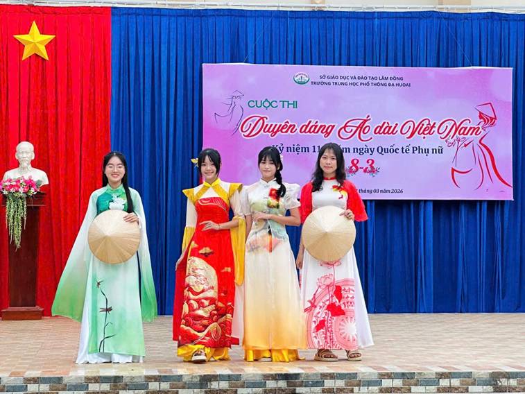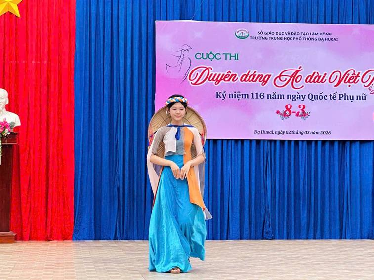 Sáng ngày 02/3/2026, trong không khí hân hoan hướng tới kỷ niệm 116 năm Ngày Quốc tế Phụ nữ (08/3/1910 – 08/3/2026) và hưởng ứng Tuần lễ Áo dài Việt Nam năm 2026, Trường Trường THPT Đạ Huoai đã tổ chức Cuộc thi “Duyên dáng Áo dài Việt Nam” với sự tham gia sôi nổi của đông đảo học sinh toàn trường.