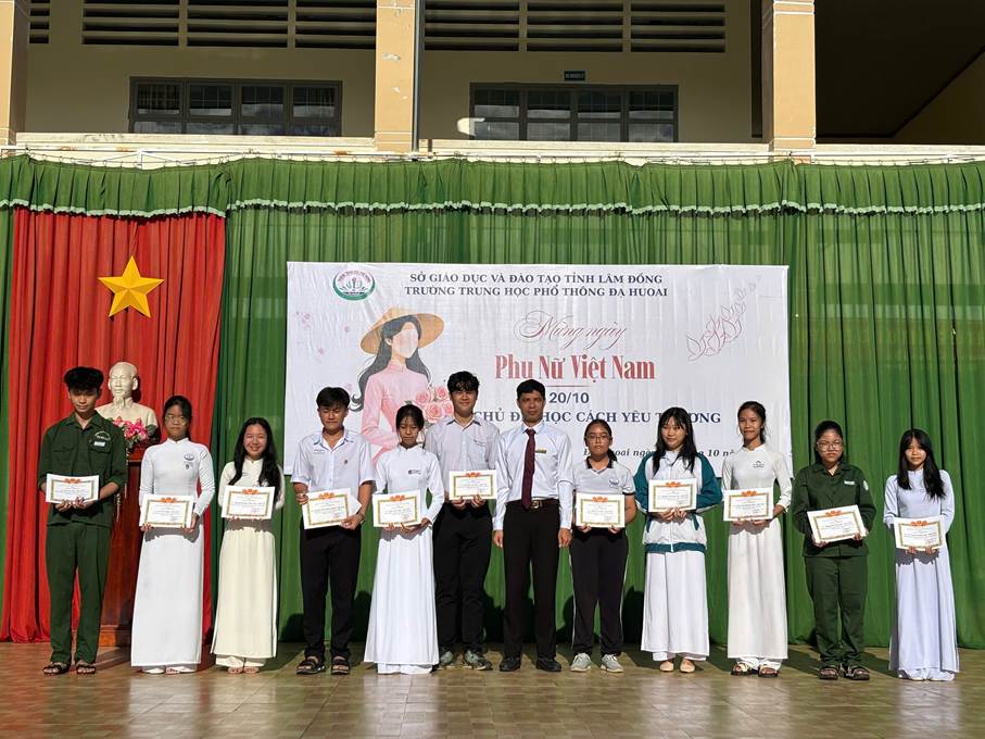 Phần cuối cùng trong chuỗi hoạt động chung là Lễ kỷ niệm 95 năm ngày thành lập Hội Liên hiệp phụ nữ Việt Nam 20/10/19030 – 20/10/2025. Trong sự kiện này, Đoàn trường phối hợp cùng Tổ chuyên môn Ngữ văn – Tiếng Anh đã tổ chức cuộc thi viết "Học cách yêu thương", một hoạt động văn hóa – giáo dục dành riêng cho học sinh. Cuộc thi đã nhận được nhiều bài dự thi đầy xúc động, là những lời tri ân, tình cảm chân thành của các em học sinh gửi đến bà, mẹ, cô giáo và những người phụ nữ thân yêu. Hoạt động tôn vinh ngày phụ nữ Việt Nam đã giúp các em hiểu thêm về vai trò và giá trị của người phụ nữ trong gia đình và xã hội.