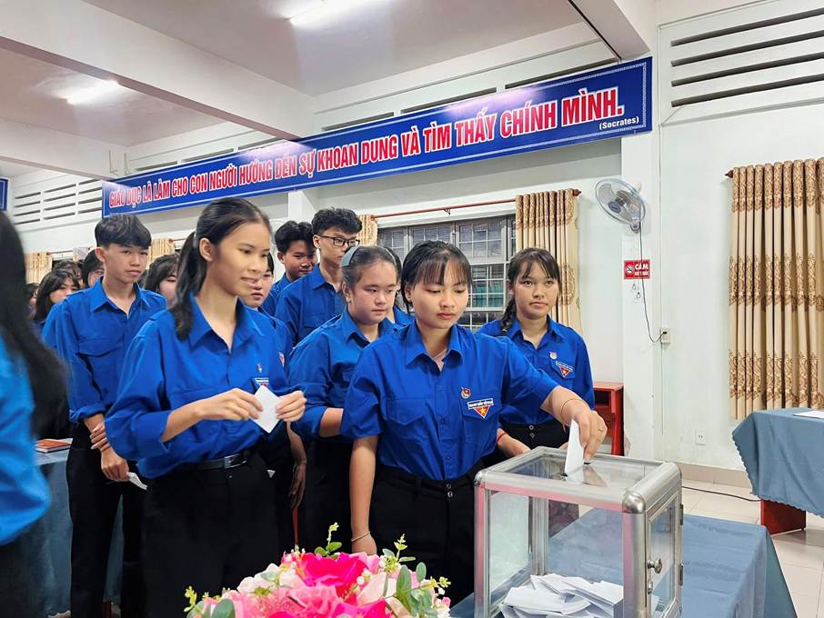 Đại hội tiến hành bỏ phiếu bầu ra Ban chấp hành Đoàn trường nhiệm kỳ 2025 – 2026.