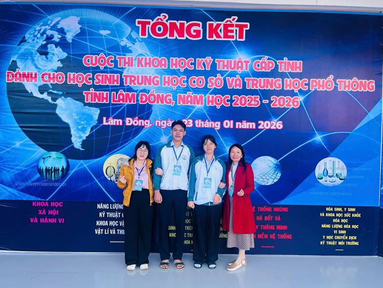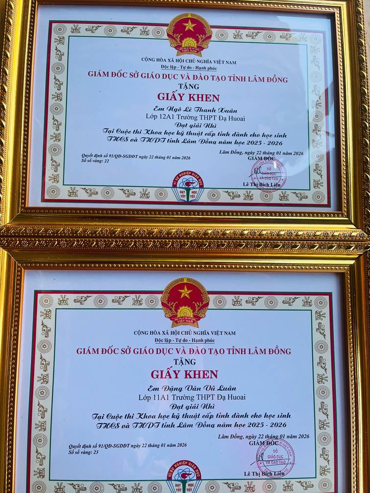 Từ ngày 21/01/2026 đến ngày 23/01/2026, Trường THPT Đạ Huoai đã tham gia Cuộc thi Khoa học kỹ thuật cấp tỉnh dành cho học sinh trung học cơ sở và trung học phổ thông tỉnh Lâm Đồng, năm học 2025 – 2026, được tổ chức tại Trường THPT Bùi Thị Xuân (TP. Đà Lạt). Đây là sân chơi trí tuệ uy tín, tạo điều kiện để học sinh phát huy năng lực nghiên cứu khoa học, tư duy sáng tạo và khả năng vận dụng kiến thức vào thực tiễn đời sống.