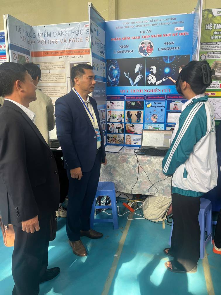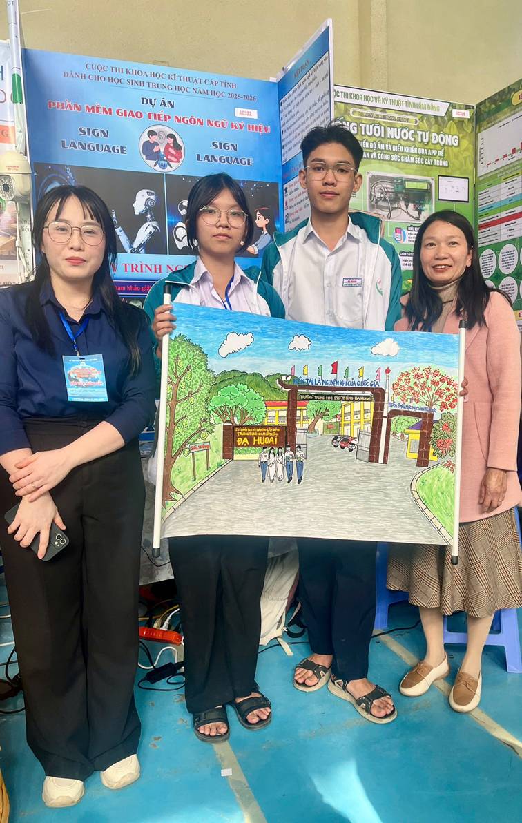Tham gia cuộc thi, Trường THPT Đạ Huoai giới thiệu đề tài “Phần mềm giao tiếp ngôn ngữ ký hiệu”, do cô Lê Thị Nga trực tiếp hướng dẫn, với sự tham gia thực hiện của hai học sinh Đặng Văn Vũ Luân – Lớp 11A1 và Ngô Lê Thanh Xuân – Lớp 12A1. Đề tài hướng đến việc ứng dụng công nghệ thông tin trong hỗ trợ giao tiếp cho người khiếm thính, góp phần lan tỏa giá trị nhân văn, thúc đẩy giáo dục hòa nhập và phát triển xã hội bền vững.