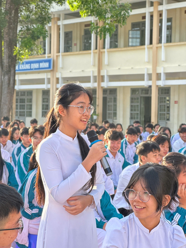 Không khí buổi tuyên truyền càng trở nên sôi nổi khi diễn ra phần giao lưu hỏi – đáp. Học sinh tích cực nêu ý kiến, trao đổi quan điểm và đặt câu hỏi xoay quanh vấn đề giới, vai trò của nam – nữ trong xã hội hiện đại, góp phần lan tỏa thông điệp nhân văn về sự tôn trọng và bình đẳng; Nói không với lựa chọn giới tính thai nhi – chung tay giảm thiểu mất cân bằng giới tính khi sinh. Đây là hoạt động thiết thực giúp học sinh rèn luyện kỹ năng, nuôi dưỡng ý thức sống đúng, sống đẹp và thể hiện trách nhiệm đối với các vấn đề xã hội.