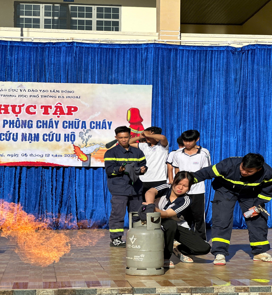Hoạt động PCCC & CNCH năm 2025 tại Trường THPT Đạ Huoai không chỉ là dịp trang bị kiến thức thực tiễn, mà còn góp phần xây dựng môi trường giáo dục an toàn, thân thiện, đáp ứng yêu cầu về an toàn phòng cháy chữa cháy theo các quy định hiện hành.