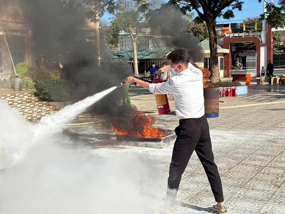 Tại buổi tập huấn, đồng chí Trần Văn Cường – cán bộ Đội Cảnh sát PCCC&CNCH Khu vực 4 tỉnh Lâm Đồng – đã truyền đạt những kiến thức trọng tâm về công tác phòng cháy, chữa cháy trong trường học, nhấn mạnh vai trò của việc chủ động phòng ngừa và kỹ năng thoát nạn an toàn. Toàn bộ Cán bộ, giáo viên, nhân viên và học sinh được hướng dẫn thực tập các kỹ năng cơ bản như sử dụng bình chữa cháy, xử lý sự cố cháy nổ do điện, rò rỉ gas và bảo vệ tài sản khi xảy ra tình huống khẩn cấp, góp phần nâng cao năng lực ứng phó và ý thức an toàn trong sinh hoạt đời sống hàng ngày.