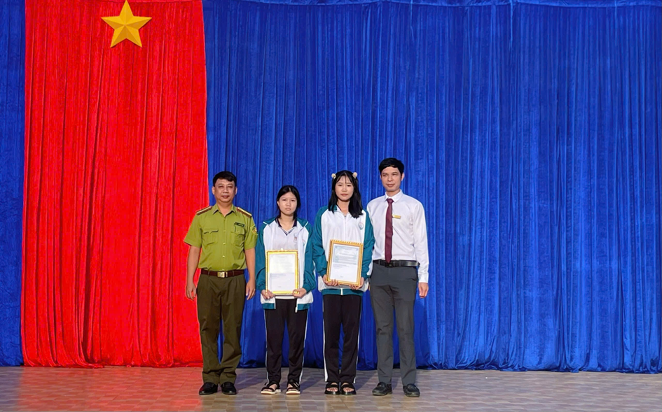 Tại buổi tuyên dương, ông Đinh Quốc Huy – Hạt trưởng Hạt Kiểm lâm khu vực Đạ Huoai – đã biểu dương tinh thần trách nhiệm của hai học sinh, đồng thời trao tặng giấy khen và những phần quà đầy ý nghĩa nhằm khích lệ, lan tỏa các hành động đẹp trong cộng đồng.